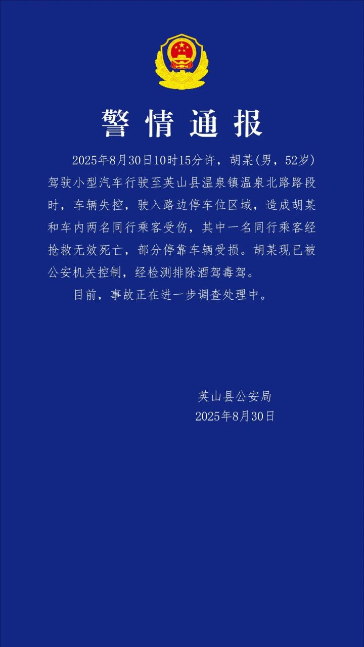 永崋证券 湖北一车辆失控撞车致1死2伤