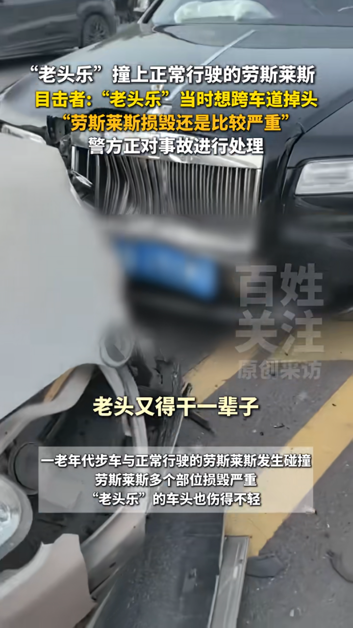 10月31日5策略,有网友爆料河北石家庄辛集市一老年代步车逆行撞上劳斯莱斯,事故造成劳斯莱斯损毁严重。